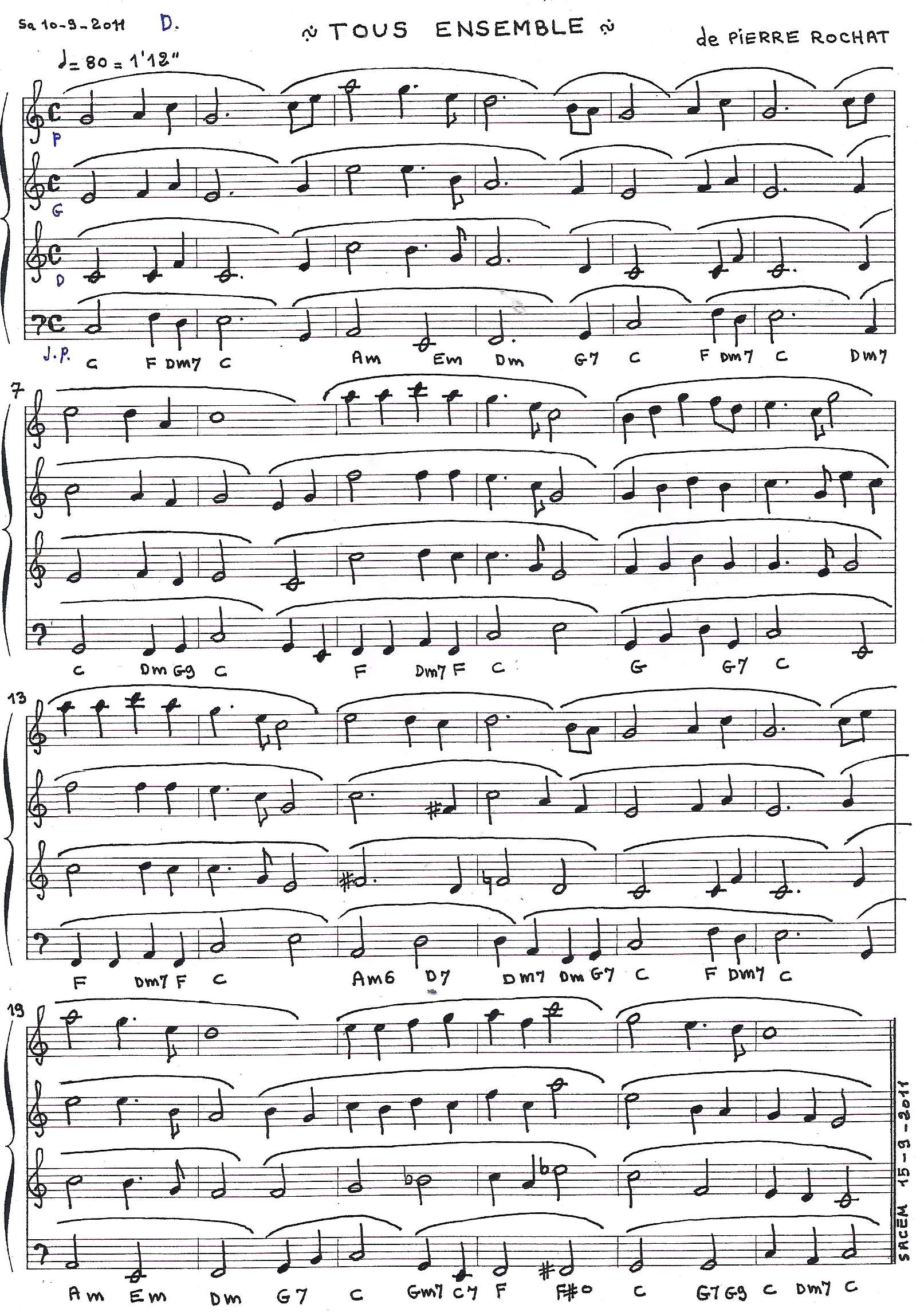 As indicated in our "Calendar" page (The News page), their next concert will take place in Notre Dame du Bon secours Chapel (Paris 75014), on the 31th of March, 7:30pm, with an invitation in a final orchestral participation for the last piece: "Tous Ensemble" (composer Pierre Rochat).